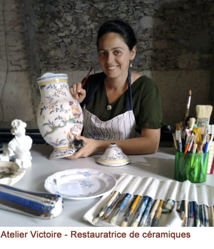 Marie-Victoire Goursolas, Restauratrice de céramique: 06-75-50-84-21 / https://atelier-victoire.fr