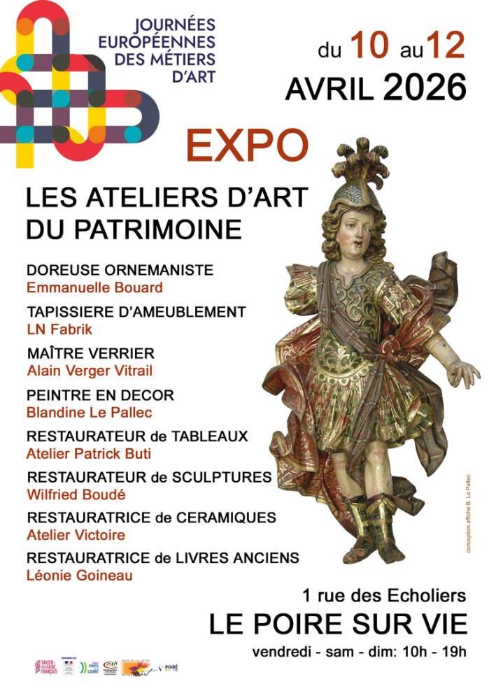 Blandine Le Pallec peintre en décor, Athanase Soullier sculpteur, Philippe Pateau sculpteur, Maxime Pateau photographe, et les Éditions Les Chantuseries.